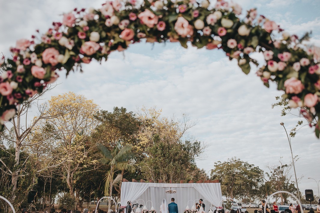 O cenário para essa celebração foi ao ar livre com pôr-do-sol perfeito